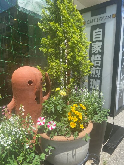 珈琲屋ドリームの入り口にいるハニワの「ハニーちゃん」と