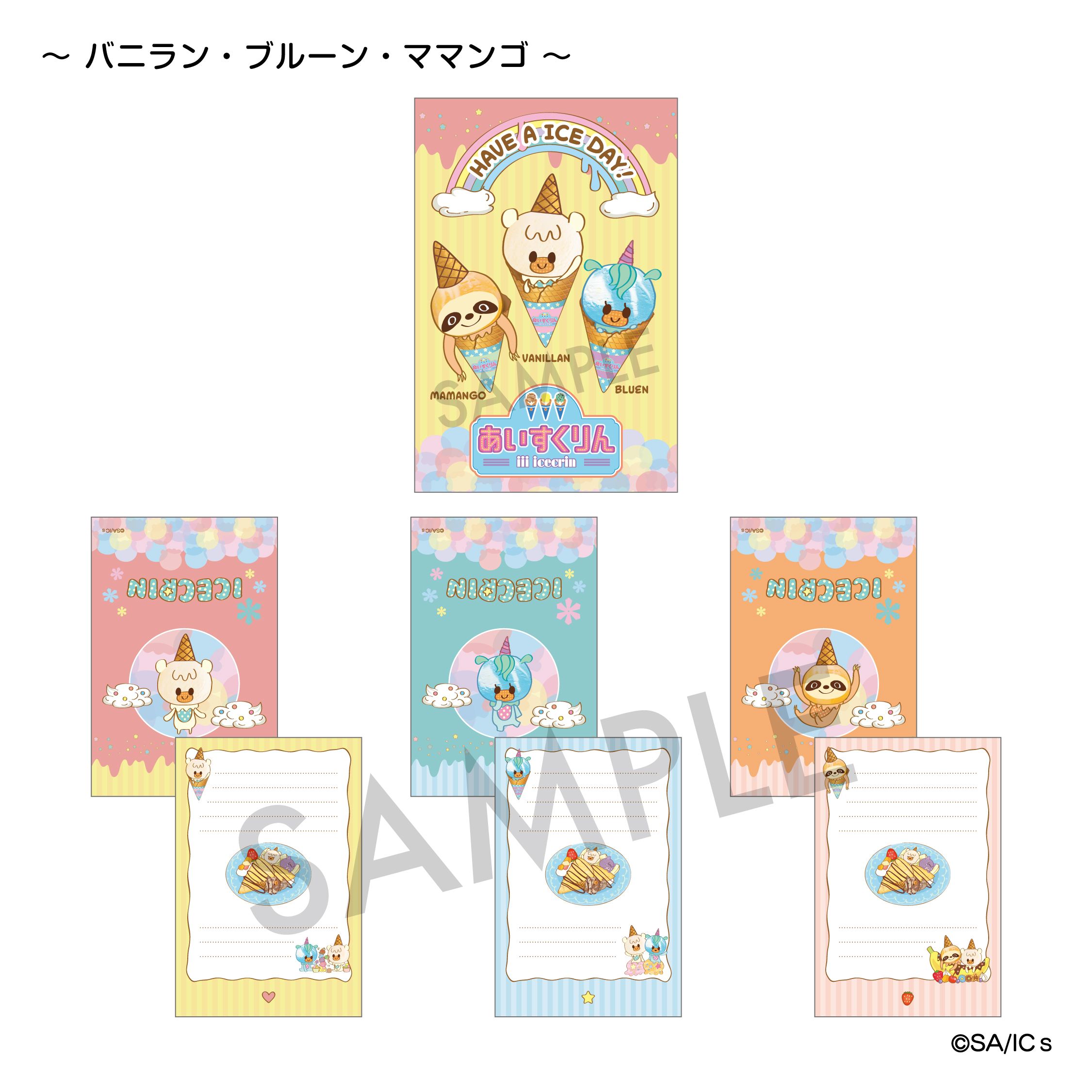 【iiiあいすくりん】2つ折りミニレターパッド A.バニラン・ブルーン・ママンゴ