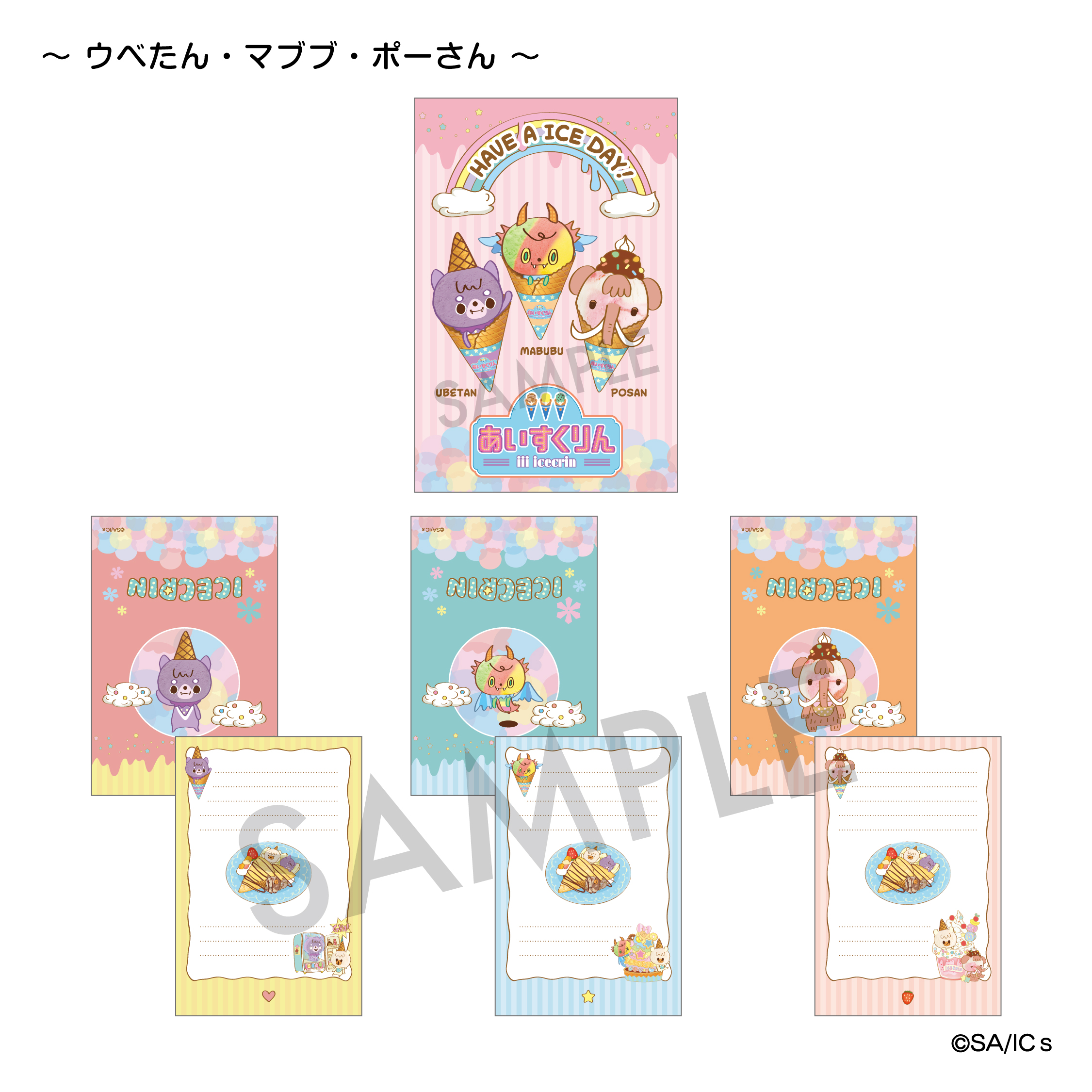 【iiiあいすくりん】2つ折りミニレターパッド E.ウベたん・マブブ・ポーさん